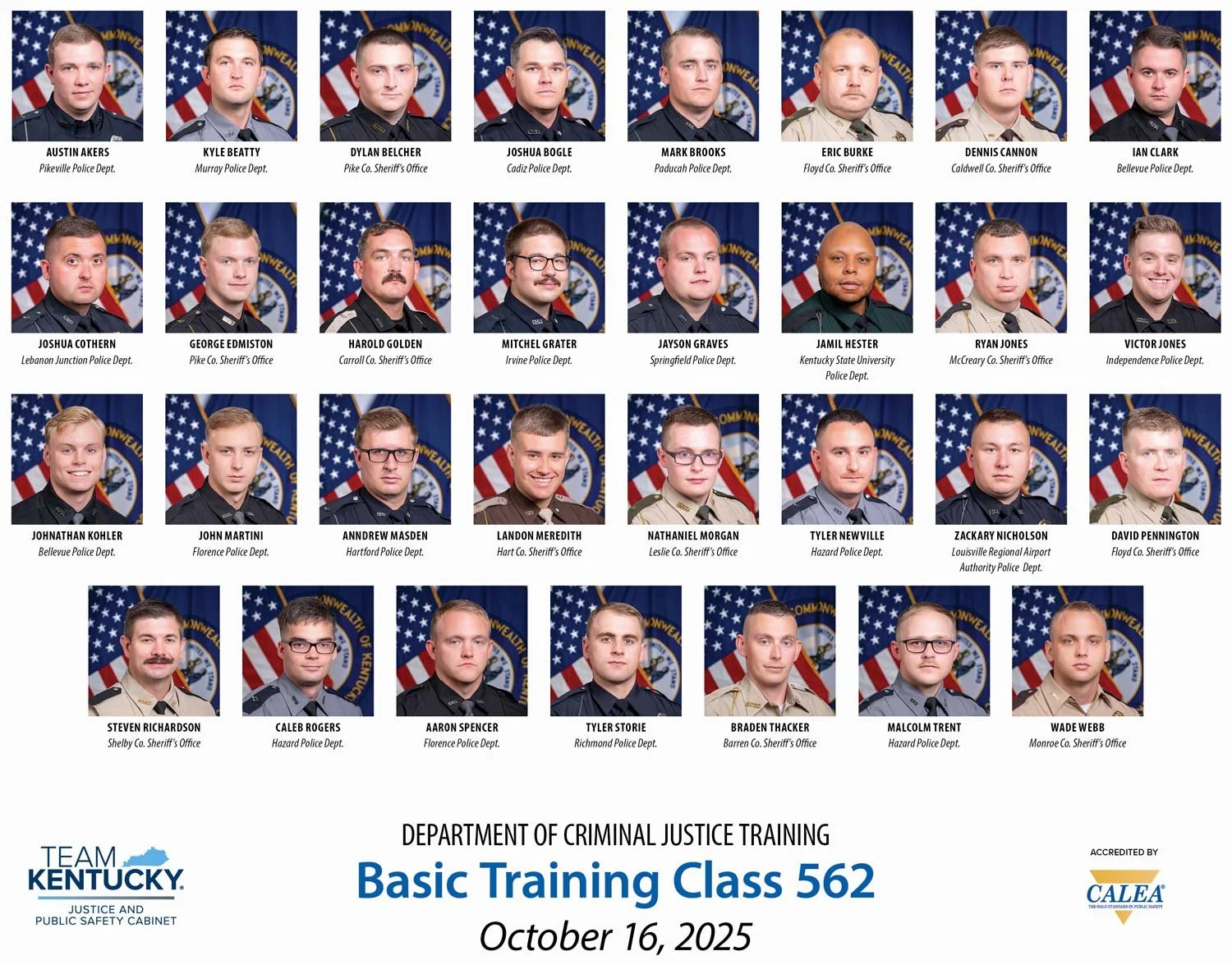 On October 16, Gov. Andy Beshear announced that 31 law enforcement officers from agencies across the commonwealth have graduated from the Kentucky Department of Criminal Justice Training’s (DOCJT) basic training academy in Richmond. These law enforcement officers now return home to serve, protect and create a safer New Kentucky Home.