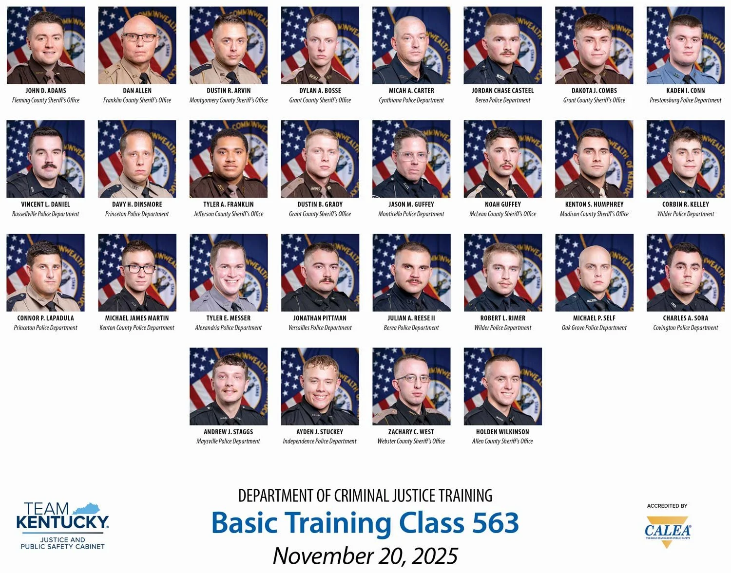 On November 20, Gov. Andy Beshear announced that 28 law enforcement officers from agencies across the commonwealth have graduated from the Kentucky Department of Criminal Justice Training’s (DOCJT) basic training academy in Richmond. These law enforcement officers now return home to serve, protect and create a safer New Kentucky Home.