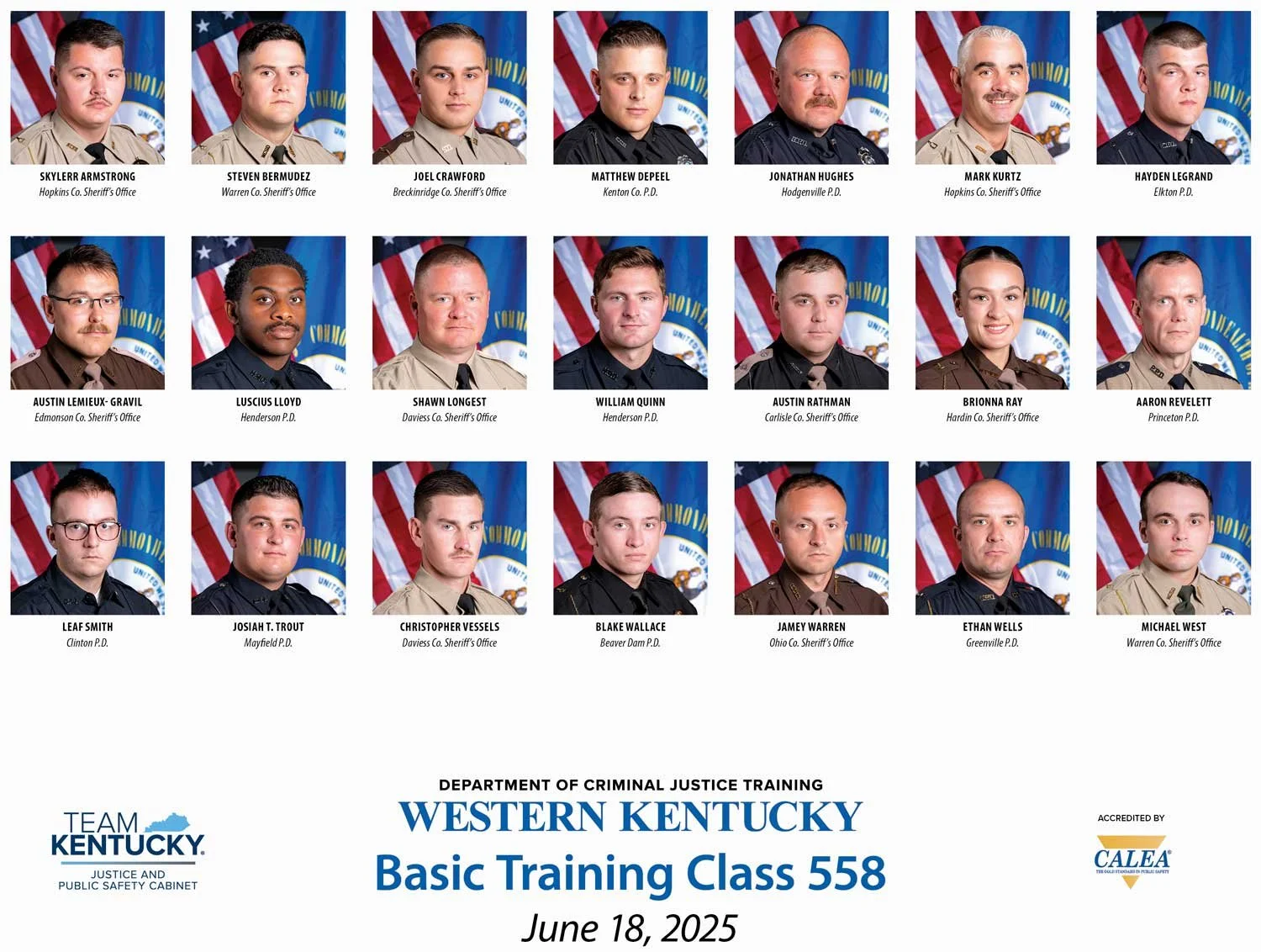“Being part of the first class in Madisonville means we made history,” said Class 558-W leader Christopher Vessels with the Daviess County Sheriff’s Office. “Not only do we set the standard for future classes, but it also means a lot to be close to home and the communities we serve while attending training.”