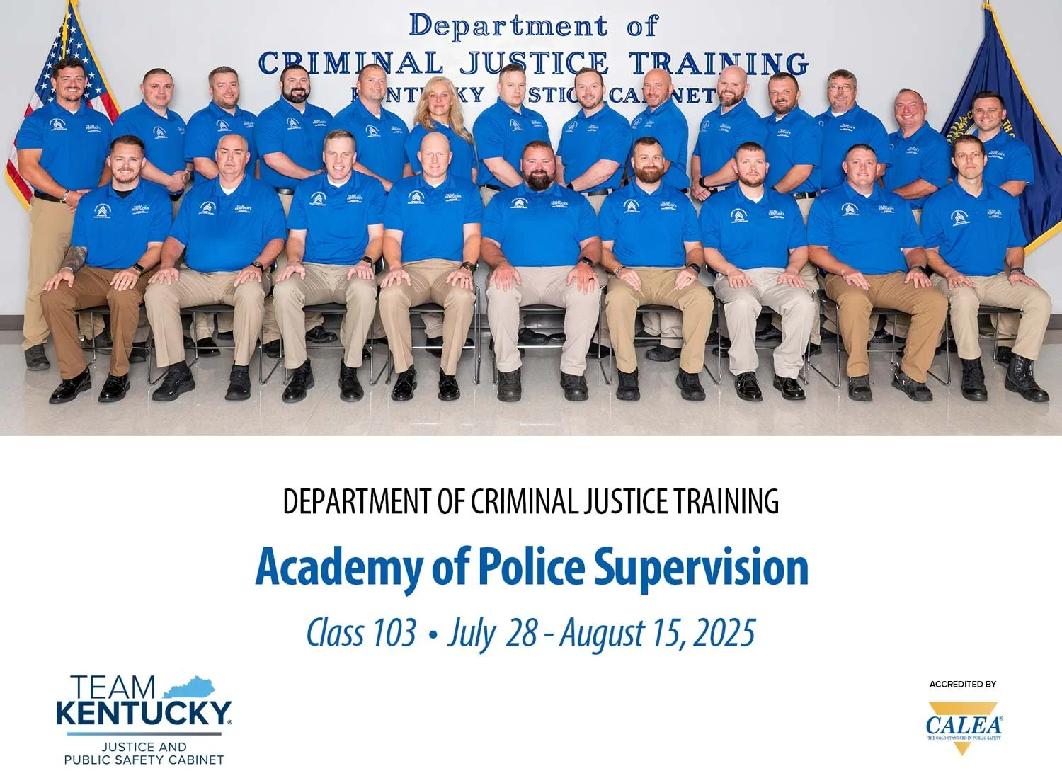 On August 15, Gov. Andy Beshear and the Department of Criminal Justice Training (DOCJT) announced that 23 law enforcement officers from agencies across the commonwealth graduated from the Academy of Police Supervision Class 103.