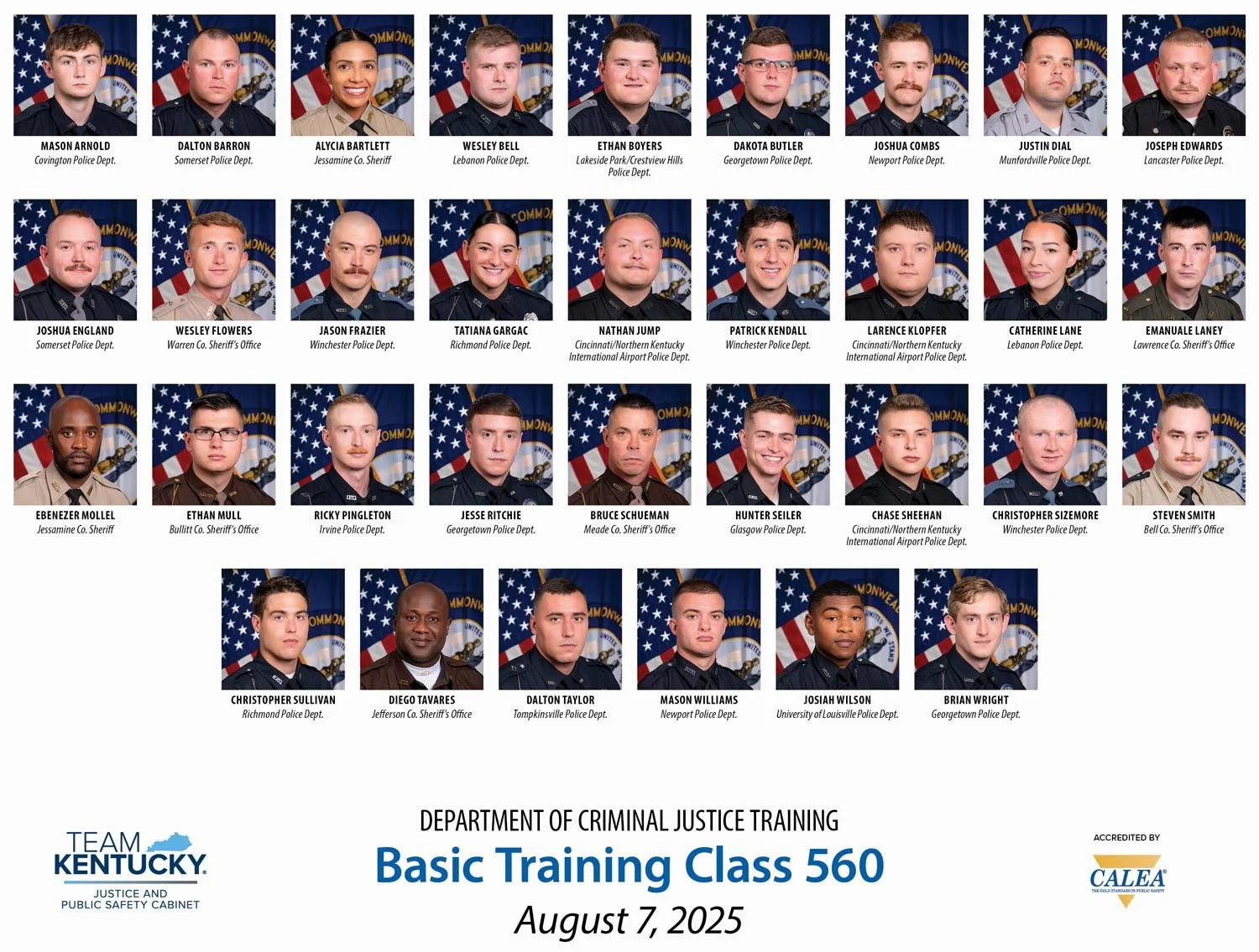 On August 7, Gov. Andy Beshear announced that 33 law enforcement officers from agencies across the commonwealth have graduated from the Kentucky Department of Criminal Justice Training’s (DOCJT) basic training academy in Richmond. These law enforcement officers now return home to serve, protect and create a safer New Kentucky Home.
