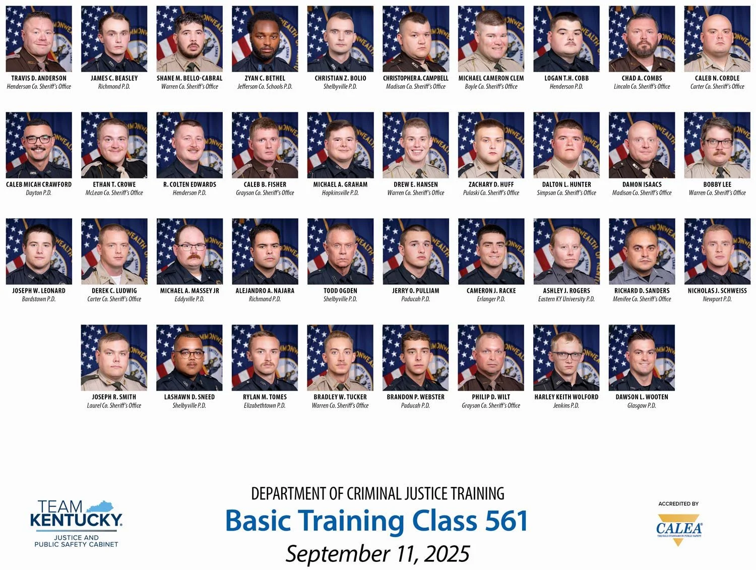 On September 11, Gov. Andy Beshear announced that 38 law enforcement officers from agencies across the commonwealth have graduated from the Kentucky Department of Criminal Justice Training’s (DOCJT) basic training academy in Richmond. These law enforcement officers now return home to serve, protect and create a safer New Kentucky Home.